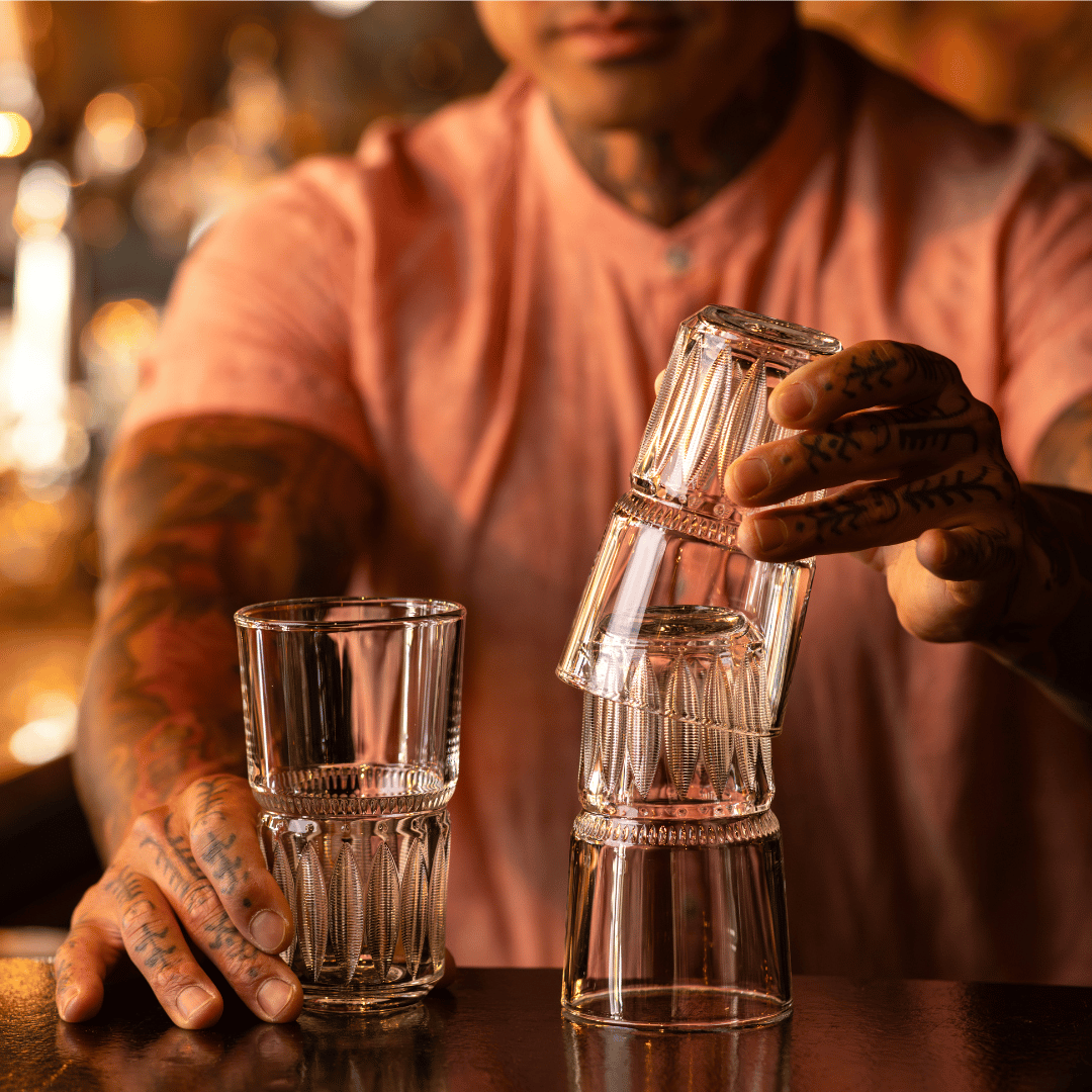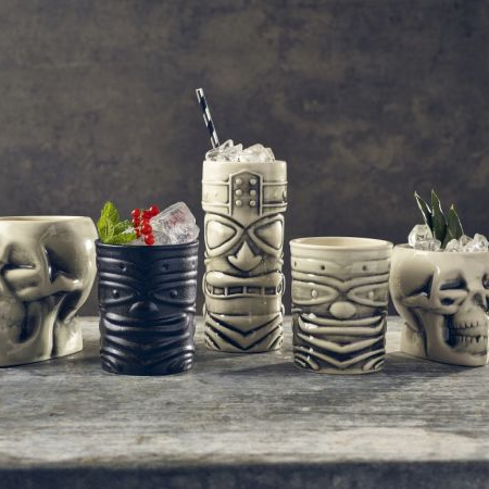 Tiki glassware adds a tropical, playful touch to any drink with its vibrant, island-inspired designs.