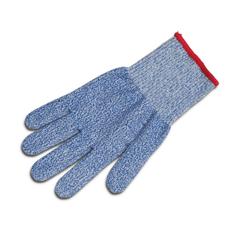 A glove that protects you when you use very sharp knives. Comfortable and durable, it fits perfectly in the hand and ensures absolute freedom of movement. Suitable for either the right or the left hand.  Solid nylon fabric reinforced with fiberglass with protection class EN 388 CE, maximum cutting protection 5. This glove is low linting to prevent food contamination. Machine washable up to 30 degrees