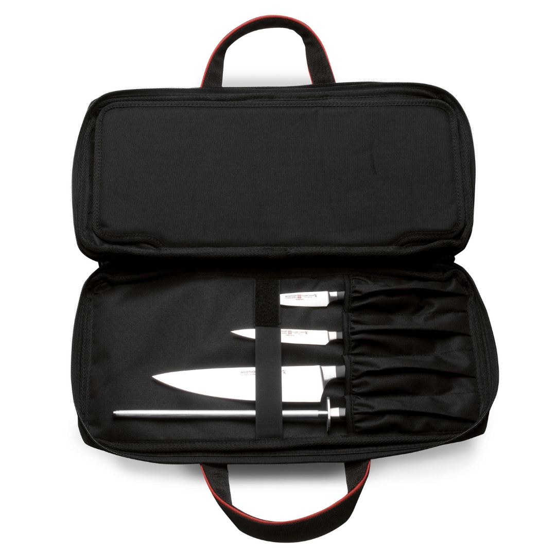 Wüsthof knife rolls and knife cases are the right accessories for the mobile chef. A knife roll is a knife bag, simple as that. It's a transportation tool where it allows you to carry your kitchen knives from place to place without worrying about them knocking against each other or becoming damaged. Choose your roll based on how many knives you own or plan to own and the length of your longest blade. It is also used to store knives at home.