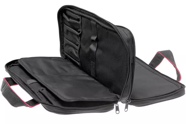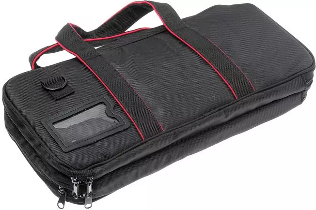 The Wüsthof knife bag is a very luxurious chef's bag that contains two separate compartments for 12 knives and a number of additional accessories, each closed by zippers. Inside the bag, you can secure all the knives with a practical Velcro strap. A combination lock is also included so you can secure the bag.
