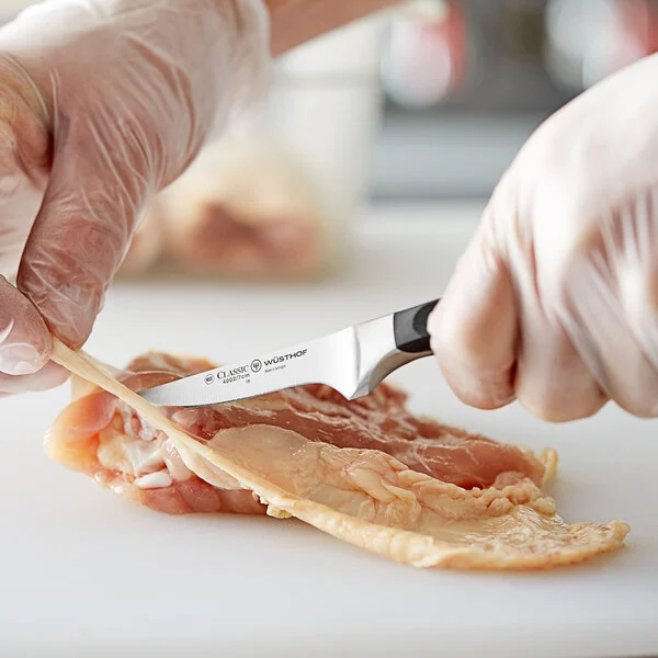 Give your kitchen an extra edge with the Wusthof Classic 7 cm forged trimming knife. A trimming knife is the best knife for cutting meat bones and trimming cartilage to create the perfect joint or cut before cooking.