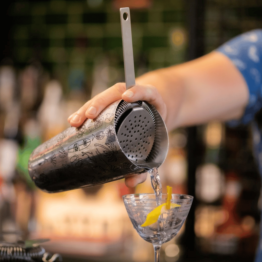 • Συνήθως χρησιμοποιείται για να αποτρέψει την πτώση πάγου και άλλων υπολειμμάτων στο κοκτέιλ μετά την ανάμειξη