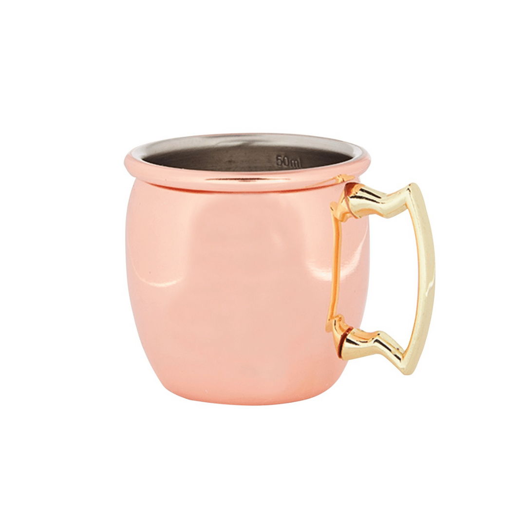 Αυτή η Copper Curved Mini Jigger Mug είναι το τέλειο ιδιόρρυθμο όργανο για όλες τις μετρήσεις κοκτέιλ. Φινίρισμα από κομψό χαλκό και επένδυση στα 10ml, 25ml, 35ml και 50ml και έχει μέγεθος 60ml όταν γεμίζει μέχρι το χείλος.