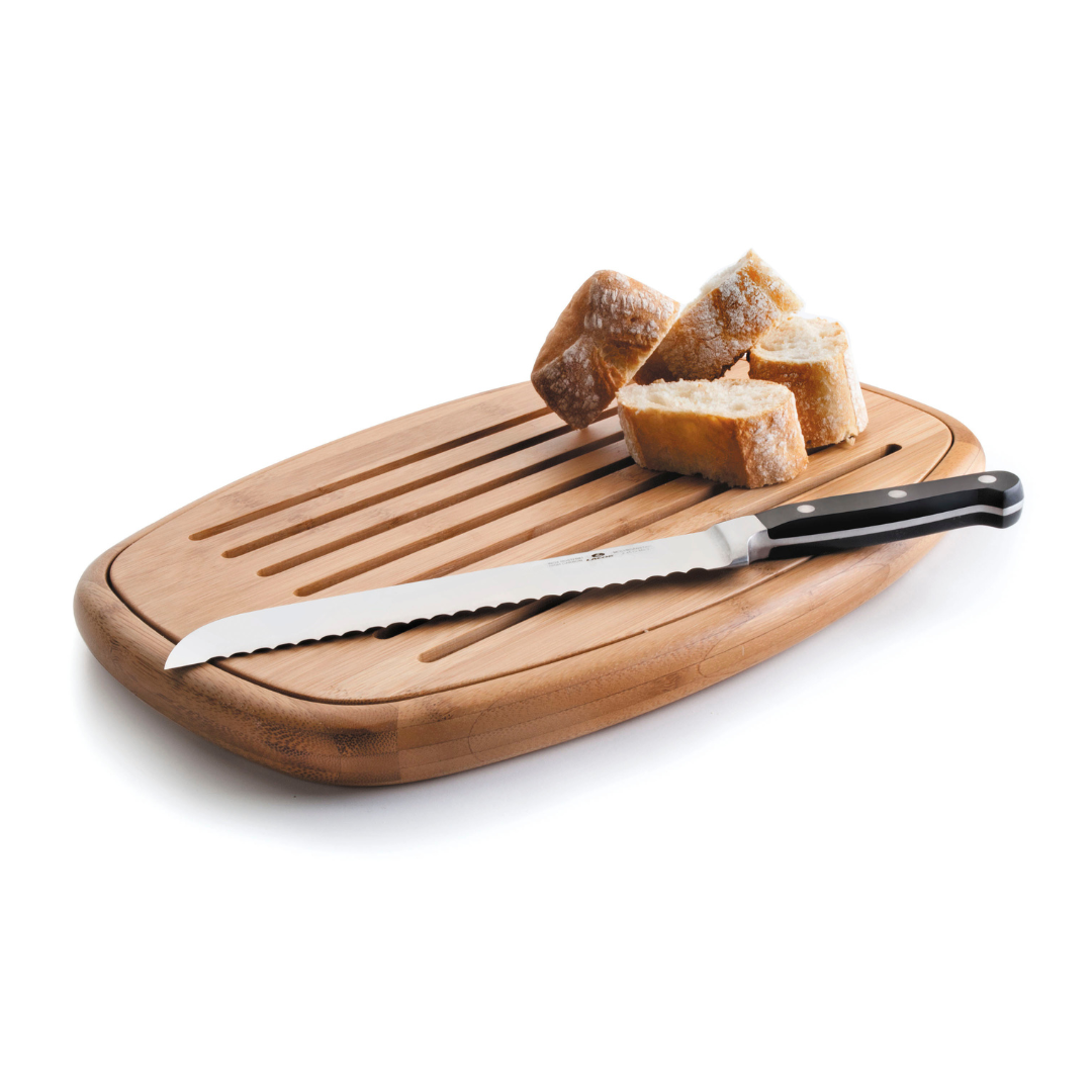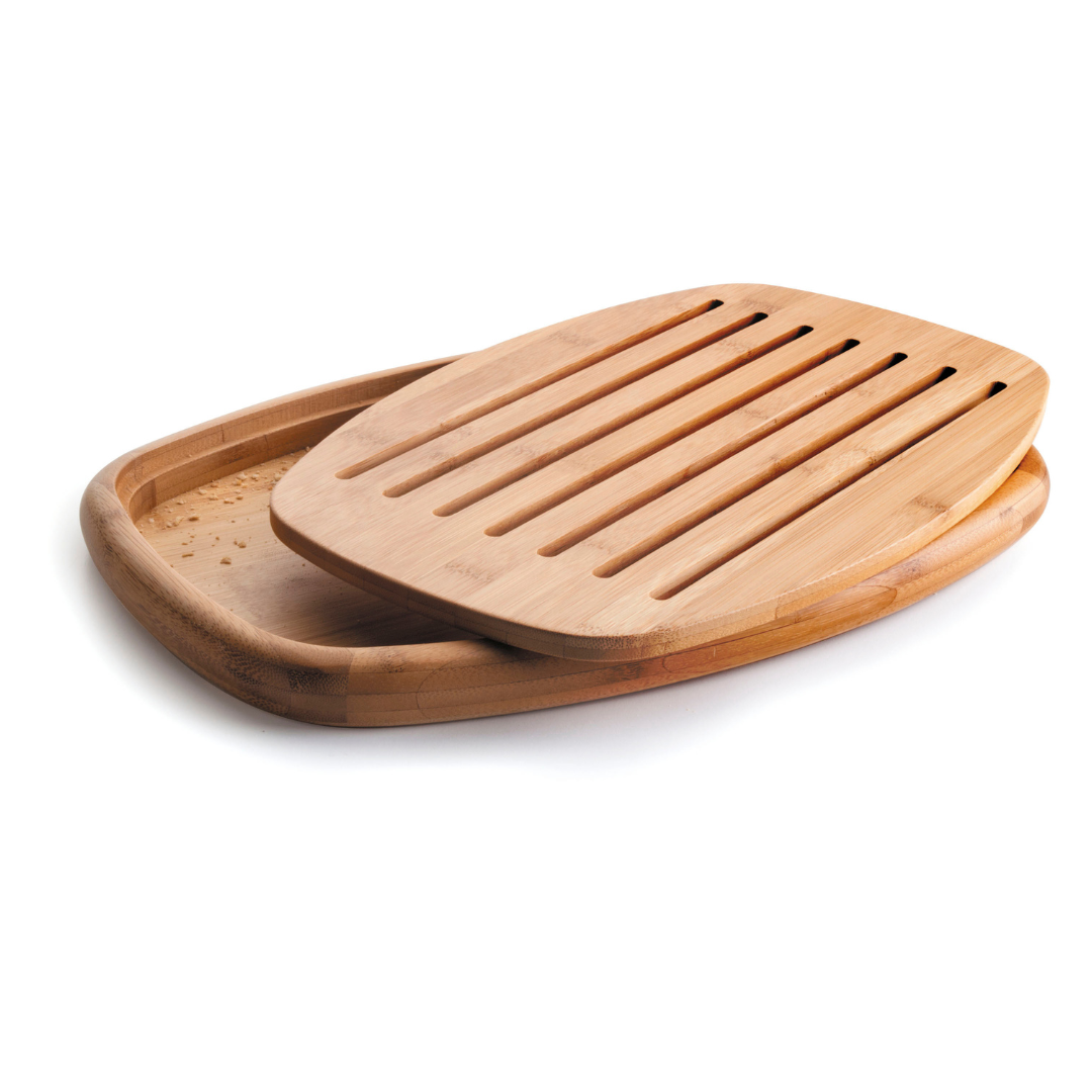 Αυτή η σανίδα κοπής ψωμιού είναι κατασκευασμένη από μπαμπού. Η σανίδα διαθέτει αφαιρούμενο πλέγμα, που επιτρέπει στα ψίχουλα να πέσουν στον κάτω δίσκο, διευκολύνοντας έτσι την αποθήκευση και τον καθαρισμό της σανίδας . Είναι η τέλεια λύση για την καταπολέμηση των ενοχλητικών ψίχουλων. Τα ψίχουλα περνούν από τις τρύπες των σχάρων και έτσι μπορούν να μαζευτούν εύκολα χάρη στο δίσκο. Επιπλέον, ο δίσκος μπορεί επίσης να χρησιμοποιηθεί για σερβίρισμα αφαιρώντας το πλέγμα και αδειάζοντας τα ψίχουλα και στη συνέχεια χρησιμοποιώντας τον για να σερβίρετε ψωμί.