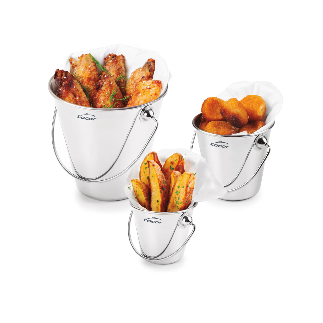 Βελτιώστε τη διασκέδασή σας με τους μίνι κάδους σερβιρίσματος από ανοξείδωτο χάλυβα Lacor. Ιδανικό για να παρουσιάσετε με στυλ φαγητά, ξηρούς καρπούς, πατάτες και πολλά άλλα. Αυτοί οι κομψοί μίνι κουβάδες προσθέτουν μια πινελιά στο τραπέζι σας, κάνοντας κάθε μπουκιά μια απολαυστική εμπειρία. Ιδανικό για να φιλοξενήσετε συγκεντρώσεις ή να προσθέσετε μια παιχνιδιάρικη πινελιά στα καθημερινά σας γεύματα.