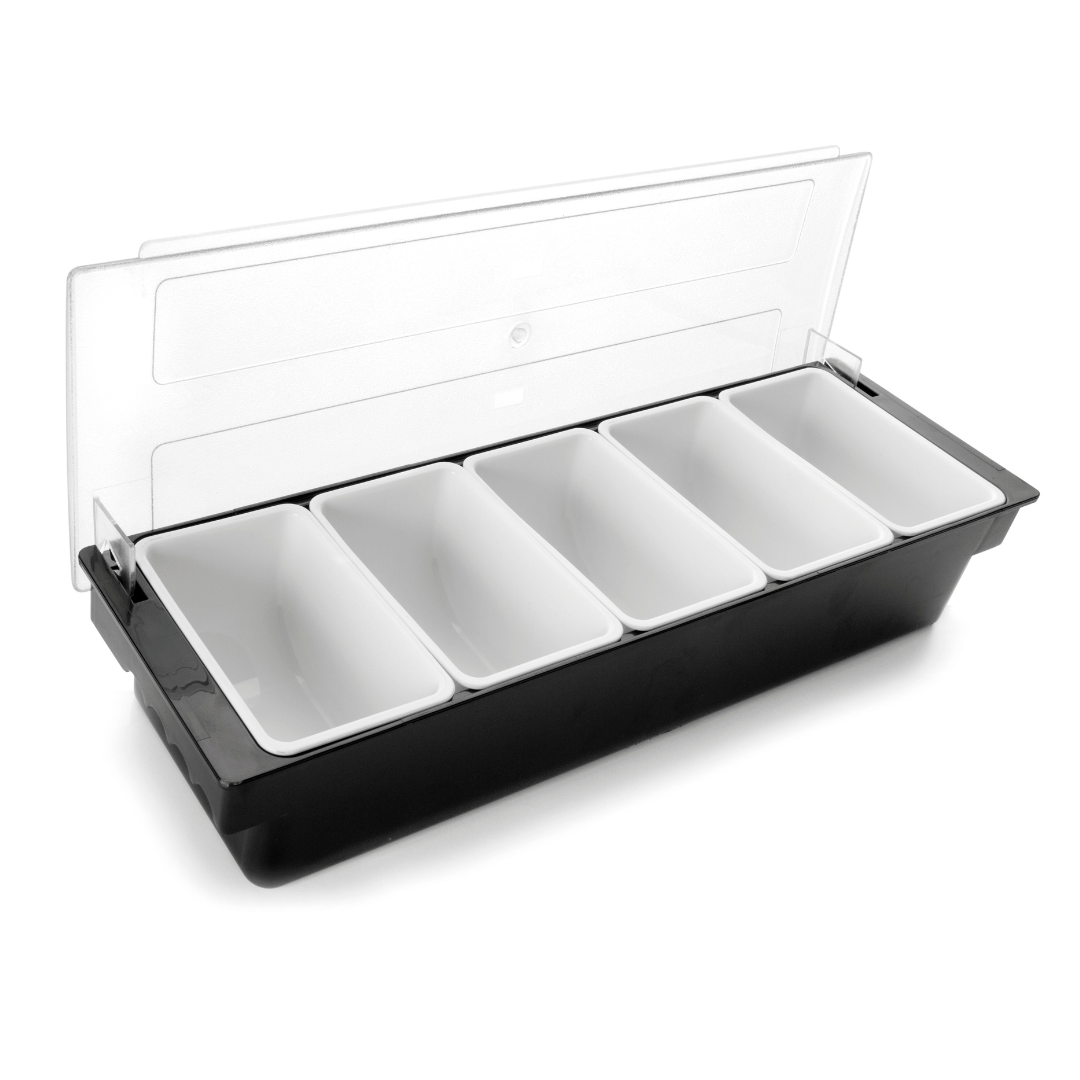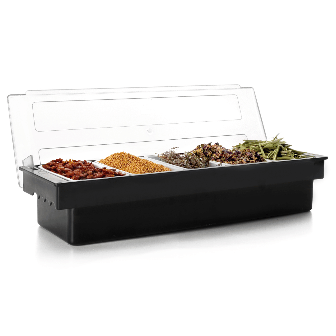 Η θήκη Lacor Condiment παρέχει αποθήκευση και οργάνωση για είδη μπαρ που χρησιμοποιούνται συνήθως, όπως γαρνιτούρες, φέτες λάιμ, αποξηραμένα πορτοκάλια και άλλα. Σχεδόν οτιδήποτε μπορεί να χρειαστείτε για να διακοσμήσετε ή να συμπληρώσετε ποτά μπορεί να χωρέσει στη θήκη καρυκευμάτων.