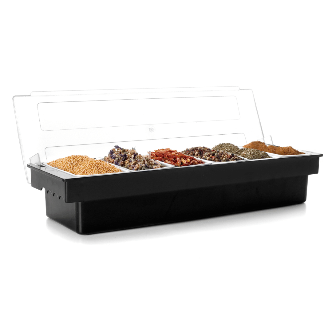 Η θήκη Lacor Condiment παρέχει αποθήκευση και οργάνωση για είδη μπαρ που χρησιμοποιούνται συνήθως, όπως γαρνιτούρες, φέτες λάιμ, αποξηραμένα πορτοκάλια και άλλα. Σχεδόν οτιδήποτε μπορεί να χρειαστείτε για να διακοσμήσετε ή να συμπληρώσετε ποτά μπορεί να χωρέσει στη θήκη καρυκευμάτων.