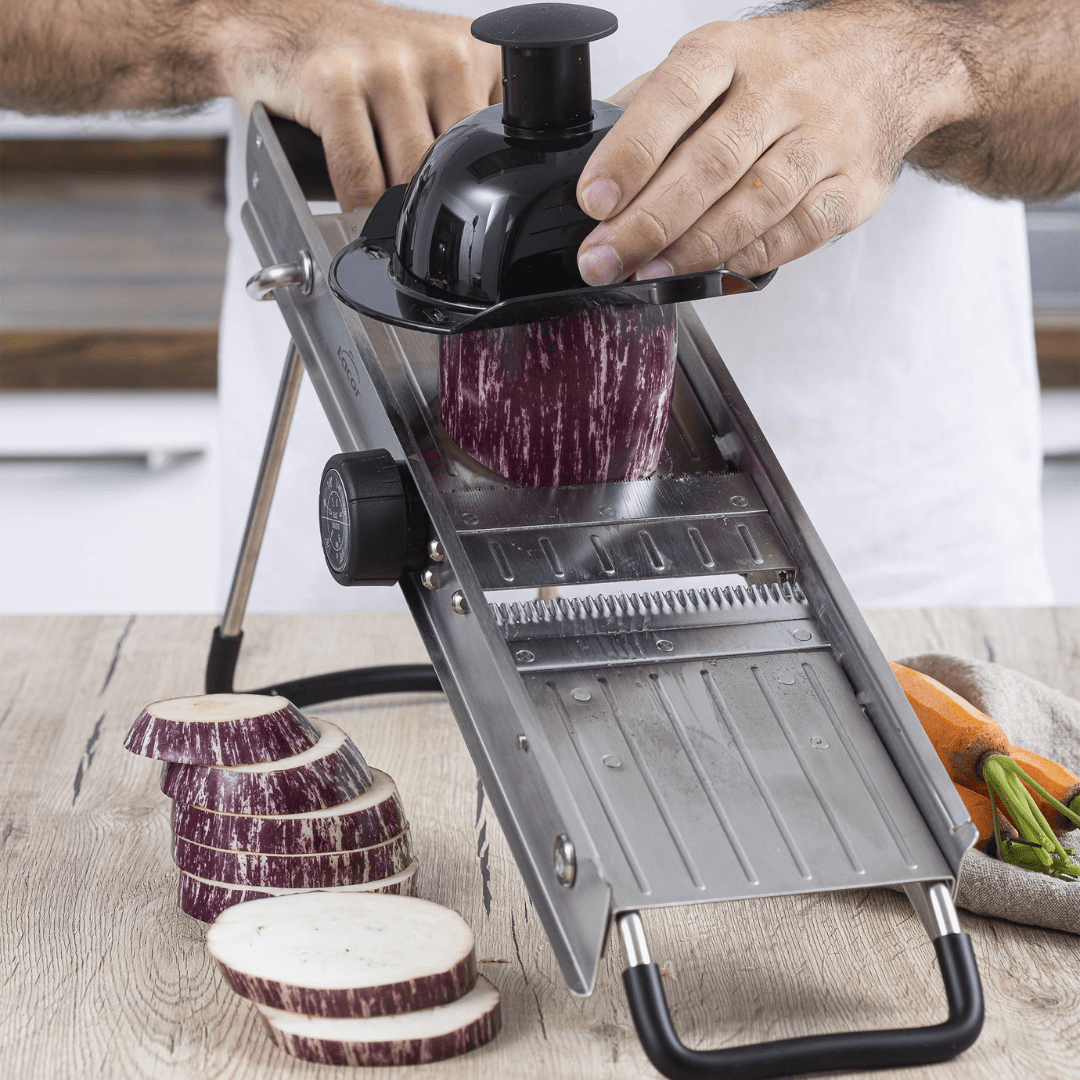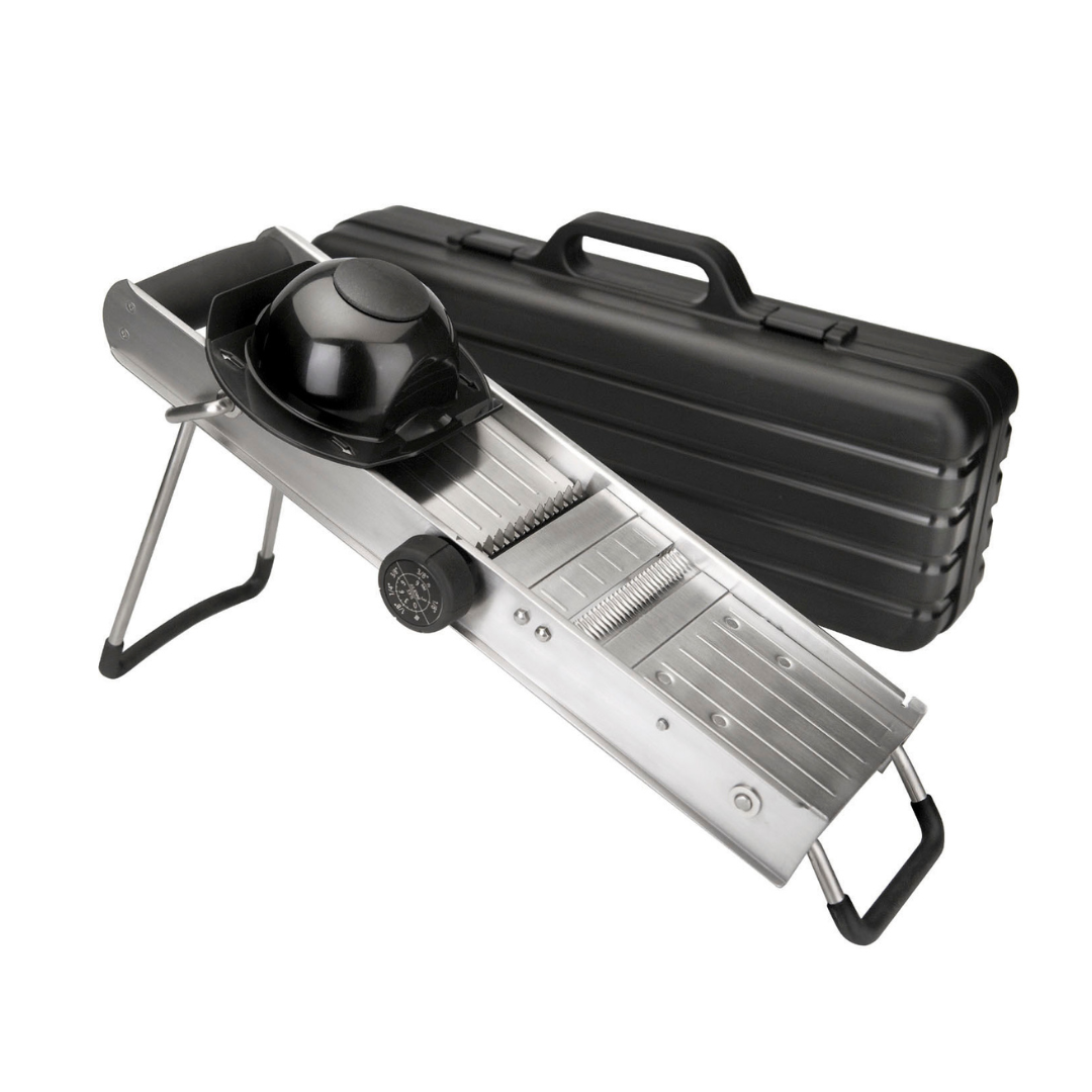 Αυτό το μαντολίνο προορίζεται για επαγγελματίες και για όσους μάγειρες επιθυμούν να έχουν μαγειρικά σκεύη υψηλής ποιότητας και αντοχής.