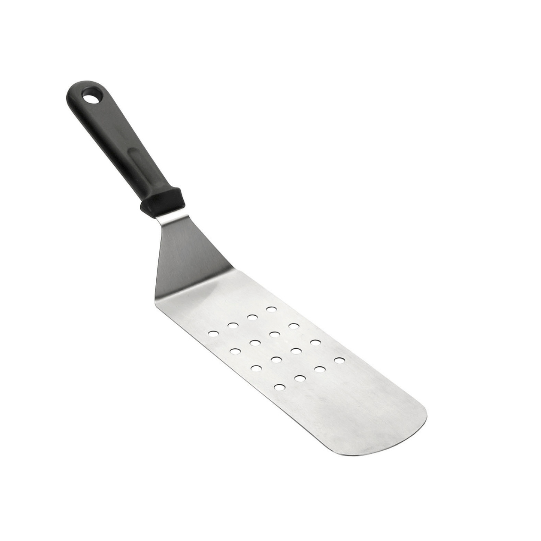 Μια διάτρητη σπάτουλα, με την πολύ μακριά λεπίδα της και τις μικρές τρύπες για την αποστράγγιση του λίπους ή άλλου υγρού, είναι μια άλλη καλή επιλογή για βαρύ μαγείρεμα . Κάποιοι μάγειρες το θεωρούν την καλύτερη σπάτουλα για το γύρισμα μπιφτέκι . Επιλέξτε μια πολύ μακριά λαβή για να κρατάτε τα χέρια σας ασφαλή κοντά σε ψησταριά ή μπάρμπεκιου.