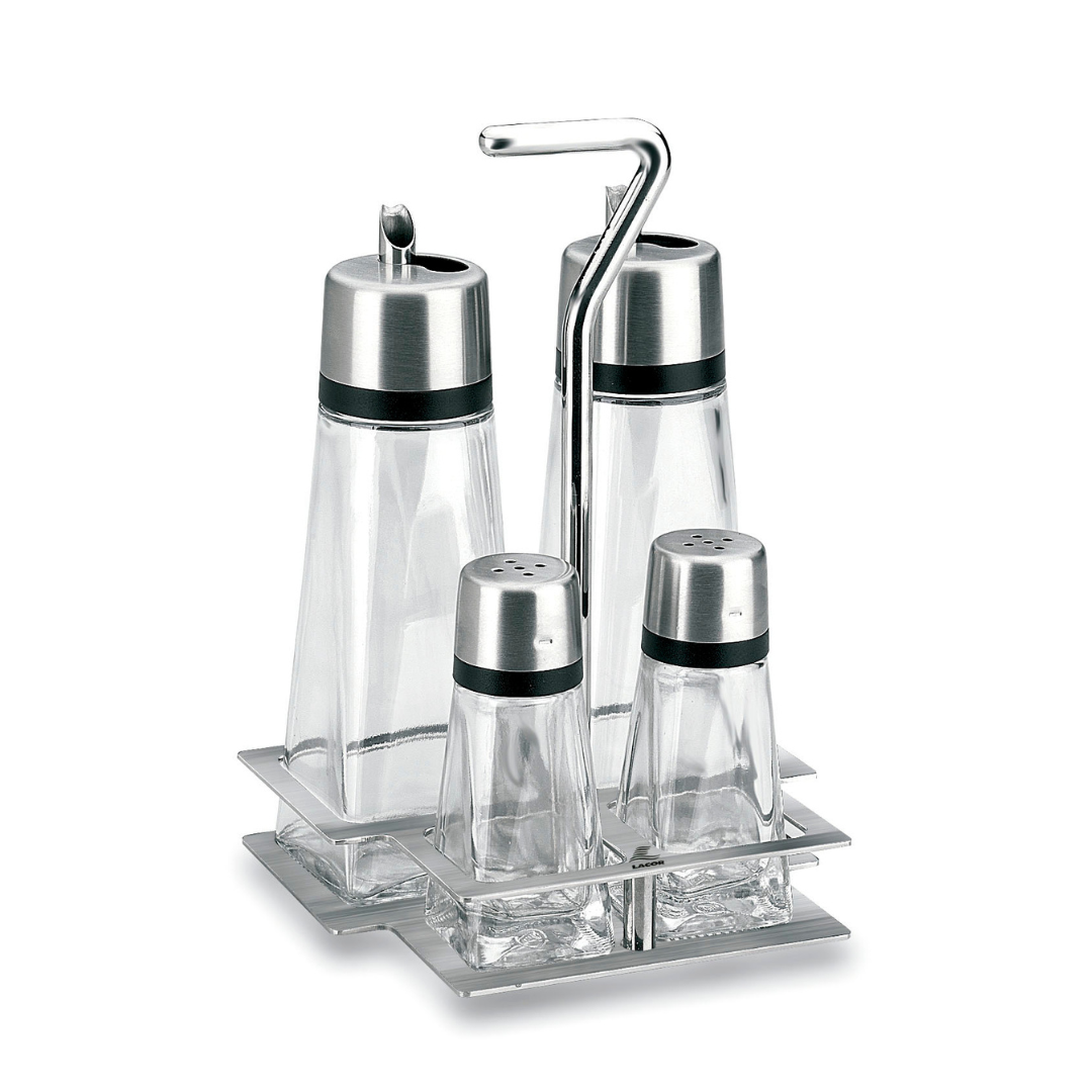 - Περιλαμβάνει 1, Σετ μπουκαλιών λαδιού και ξιδιού Lacor/αλάτι & πιπέρι με βάση