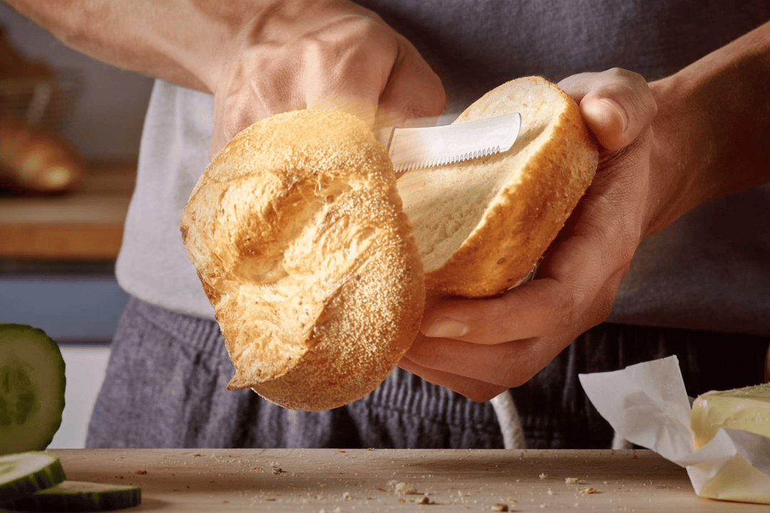 Ο τέλειος σύντροφος για την προετοιμασία του μεσημεριανού γεύματος σε πακέτο ή στο brunch: χάρη στη λεπτή οδοντωτή άκρη του, αυτό το μαχαίρι Wüsthof Silverpoint όχι μόνο κόβει καθαρά τα ρολά χωρίς να σκίζονται, αλλά είναι επίσης κατάλληλο για λαχανικά (όπως σφιχτές ντομάτες), φρούτα ή ξηρά λουκάνικο. Αυτό το καθιστά αναπόσπαστο μέρος της προετοιμασίας του σάντουιτς και της ρύθμισης του τραπεζιού brunch, που βρίσκεται ιδανικά δίπλα στο Cheese Knife μας.