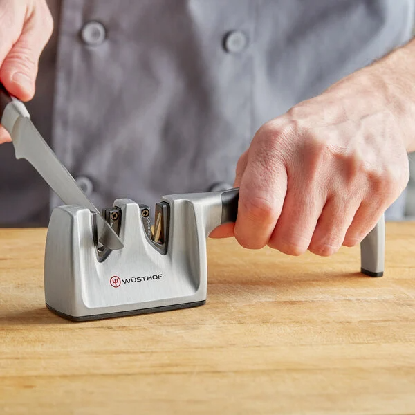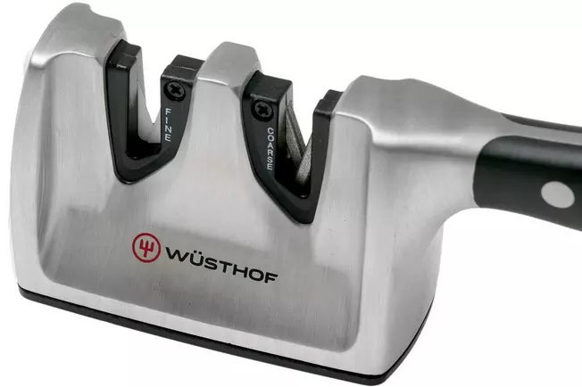 The Wüsthof 2-stage pull-through, V-shaped Knife Sharpener with diamond rods and ceramic steels is particularly suitable for those who do not feel comfortable using Sharpening Steels or Whetstones.